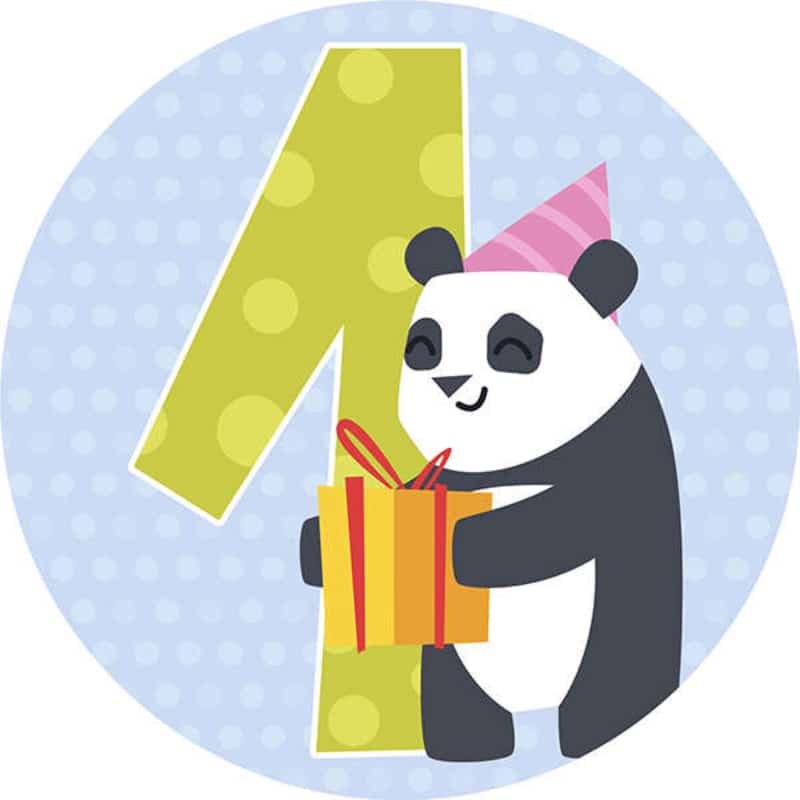 Onnittelukortti 1 vuotta pyöreä panda glitter