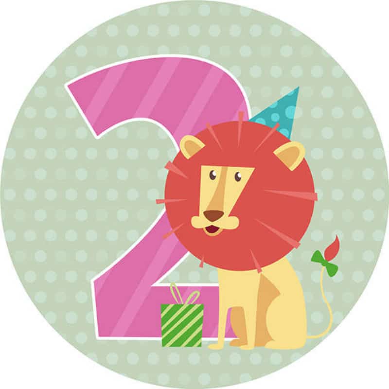 Onnittelukortti 2 vuotta pyöreä leijona kimaltava