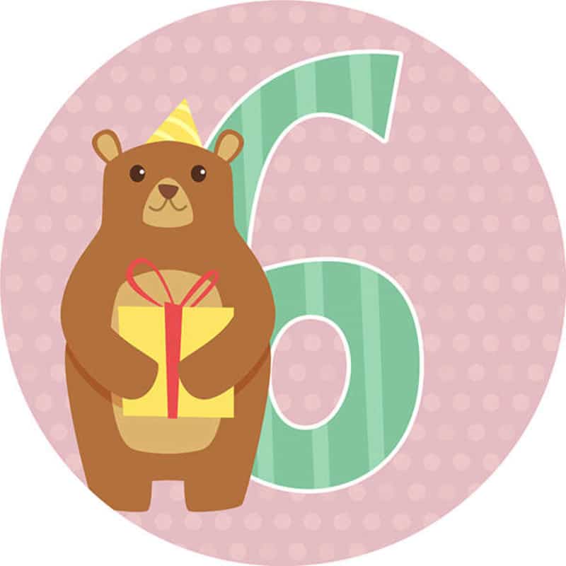 Onnittelukortti 6 vuotta pyöreä karhu glitter