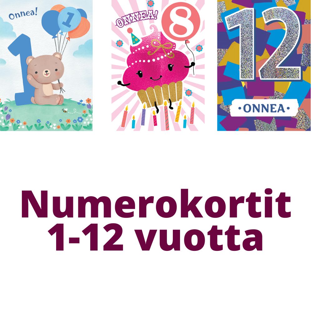 Onnittelukortti Numerot 1-12 vuotta – Iloiset ja värikkäät Karto-onnittelukortit tekevät syntymäpäivästä entistäkin erityisemmän! Näissä korteissa on saatavilla paljon erilaisia kuvitusvaihtoehtoja, jotka vaihtelevat numeron mukaan. Valikoimasta löytyy niin eläinhahmoja, autoja, prinsessoja kuin muita hauskoja teemoja, jotka sopivat eri-ikäisille lapsille.