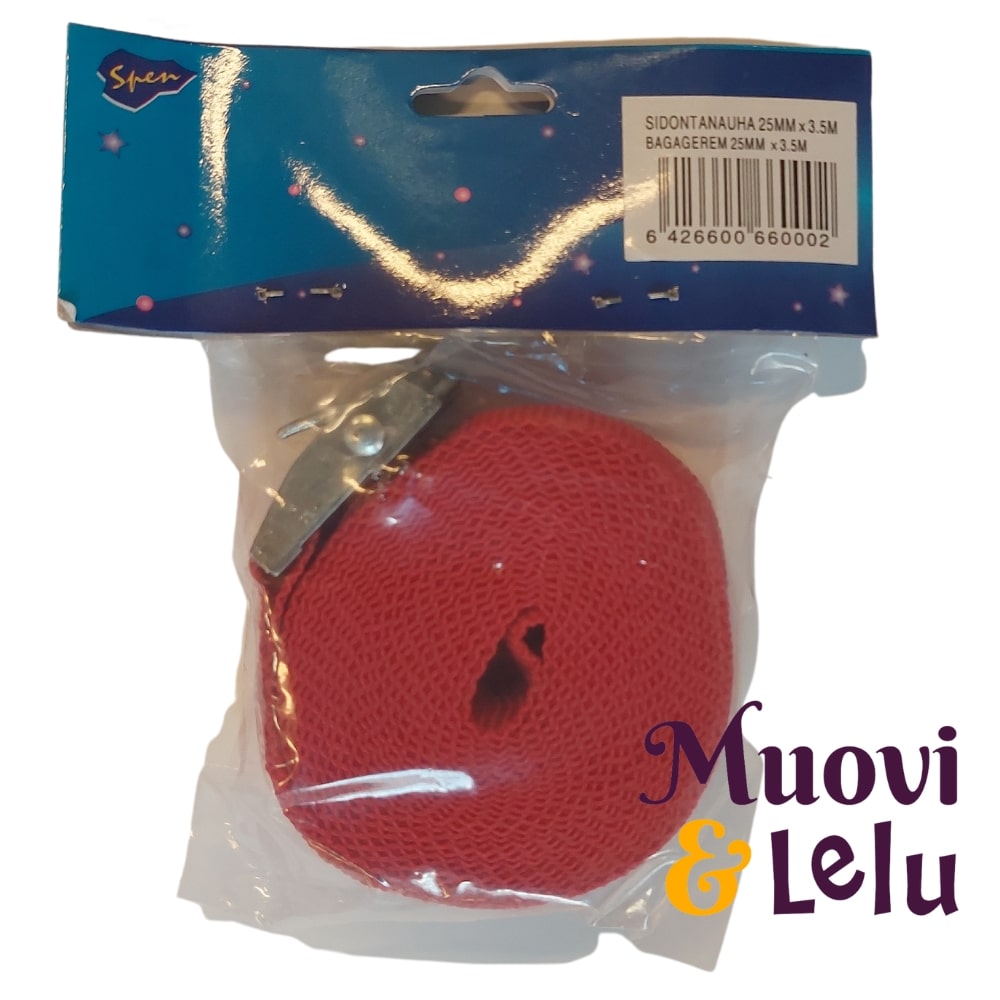 Nauha sopii esim. Retkeilyvälineiden kiinnittämiseen tai autoon kiinnittämiseen. Nauhassa on lukkolaite johon sen voi lukita.