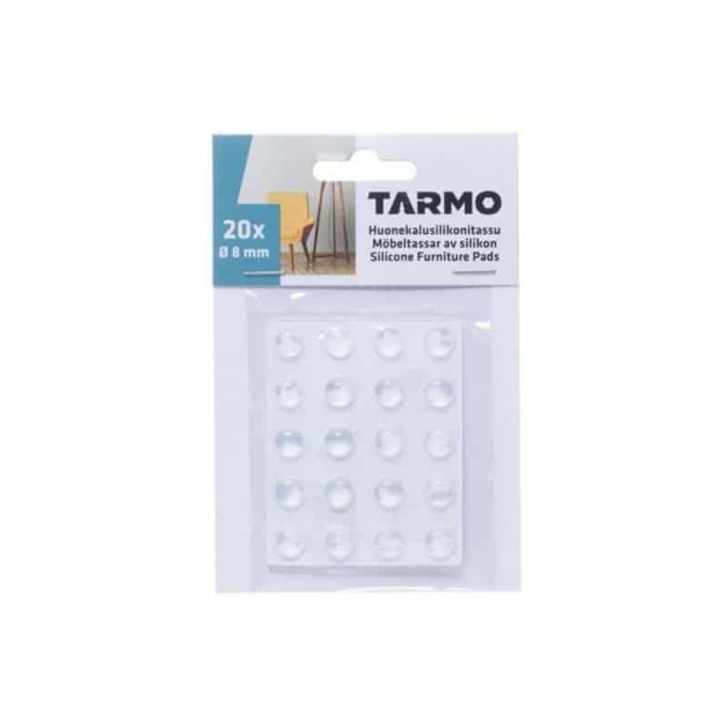 Silikonitassu on huomaamaton ja vähentää esimerkiksi kaapinovien ja laatikoiden kolinaa. Silikonitassuja voi käyttää myös huopatarrojen tavoin vähentämään lattioiden naarmuuntumista. Halkaisija 0,8 cm. Liimapinta.