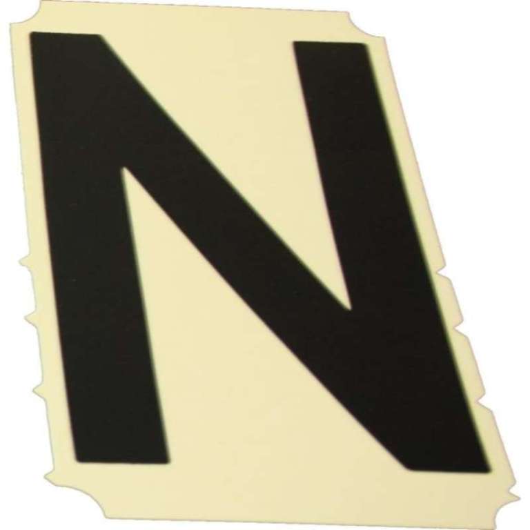 Vinyylimuovista kirjaimen tai numeron muotoon leikattu, itseliimautuva merkki.
