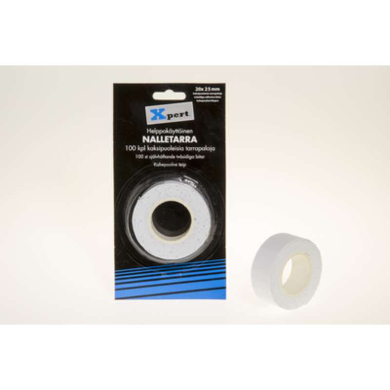 Tarmo Nalletarra 100 kpl -pakkaus on näppärä ratkaisu, kun tarvitset helppoa ja siistiä tapaa kiinnittää kevyitä esineitä erilaisiin pintoihin. Pakkaus sisältää 100 valmiiksi leikattua, kaksipuolista tarrapalaa, joiden koko on 20 x 25 mm. Tarrapalojen kokonaismitta on 250 cm, mikä riittää moneen käyttökertaan.