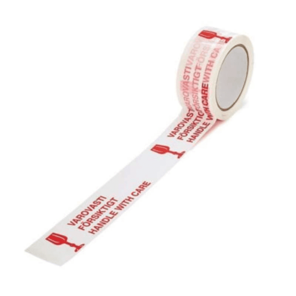 Varoitusteippi herkkien ja helposti rikkoutuvien pakettien merkitsemiseen. Varoitusteipillä autat kuljetuksessa ja varmistat tuotteiden pääsyö ehjänä perille.