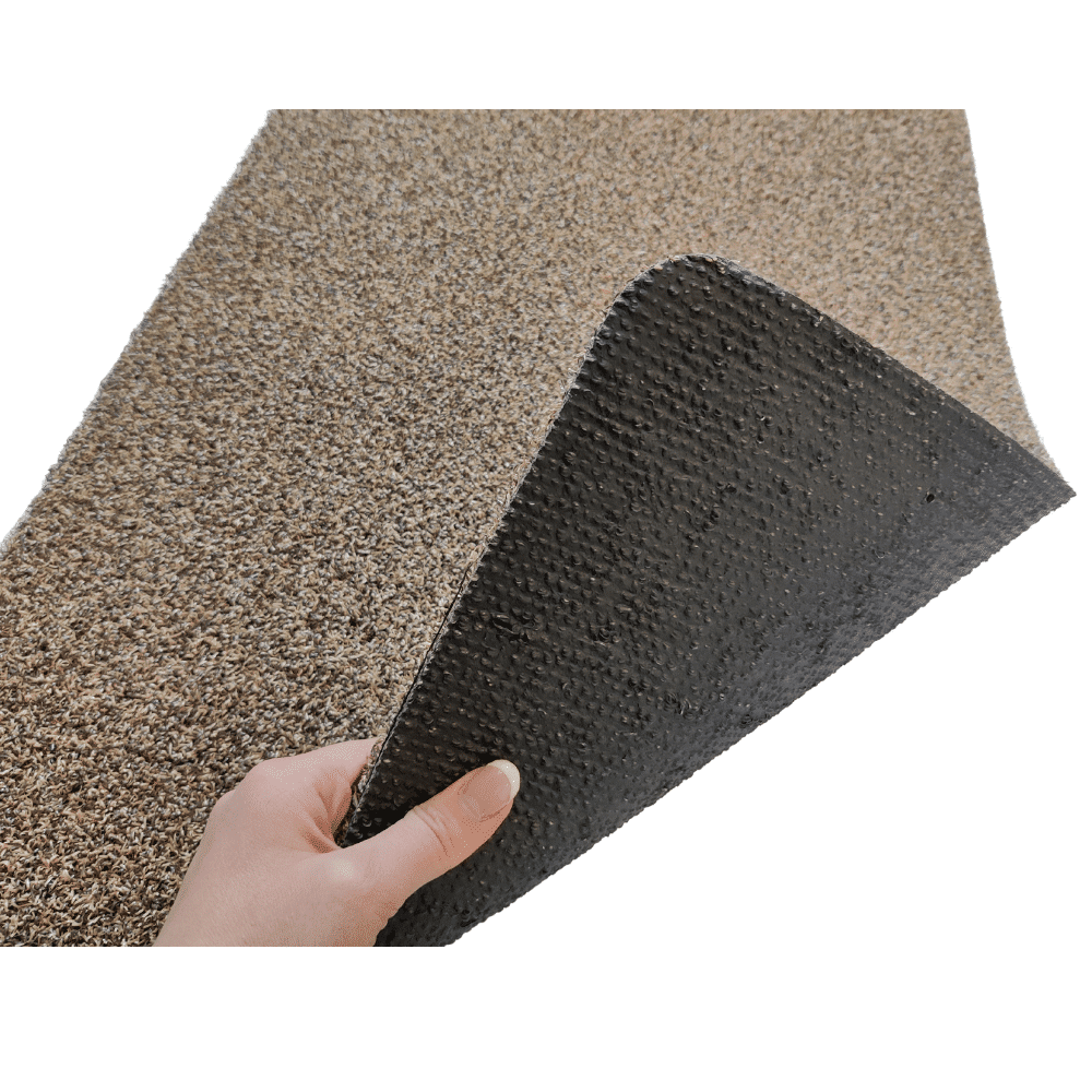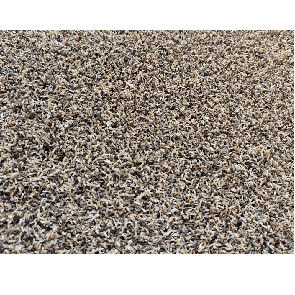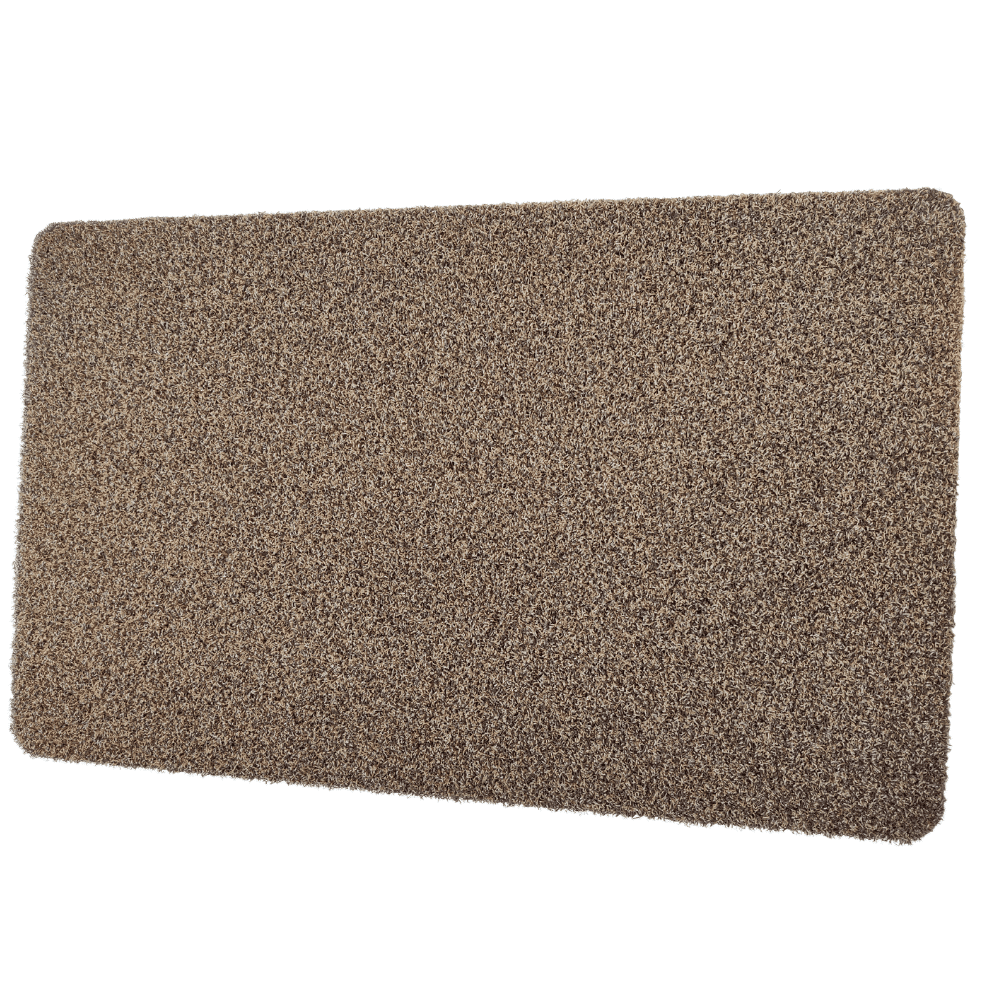 Tyylikäs kynnysmatto 50 x 80 cm Hestia vaaleanruskea imee tehokkaasti itseestä hyvin lian, mudan ja soran eteisessä. Kura kynnysmatossa on karhea muovipohja ja sen päälimateriaali on karheaa ja kovaa tekonurmimaista materiaalia.