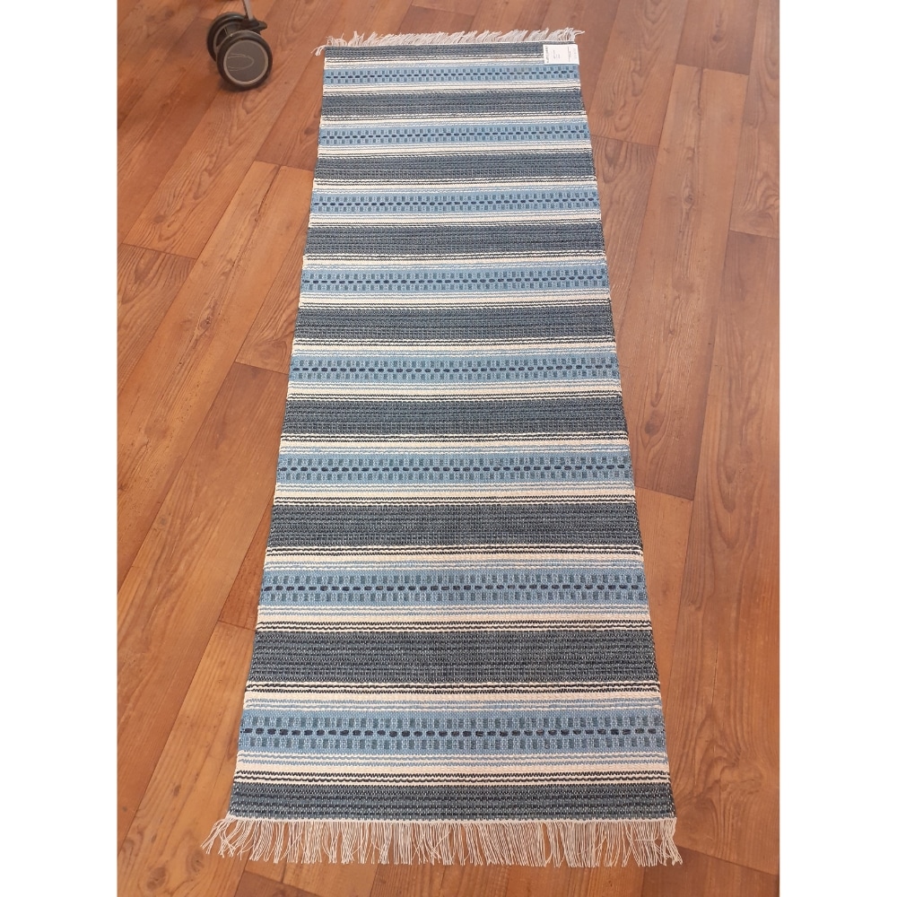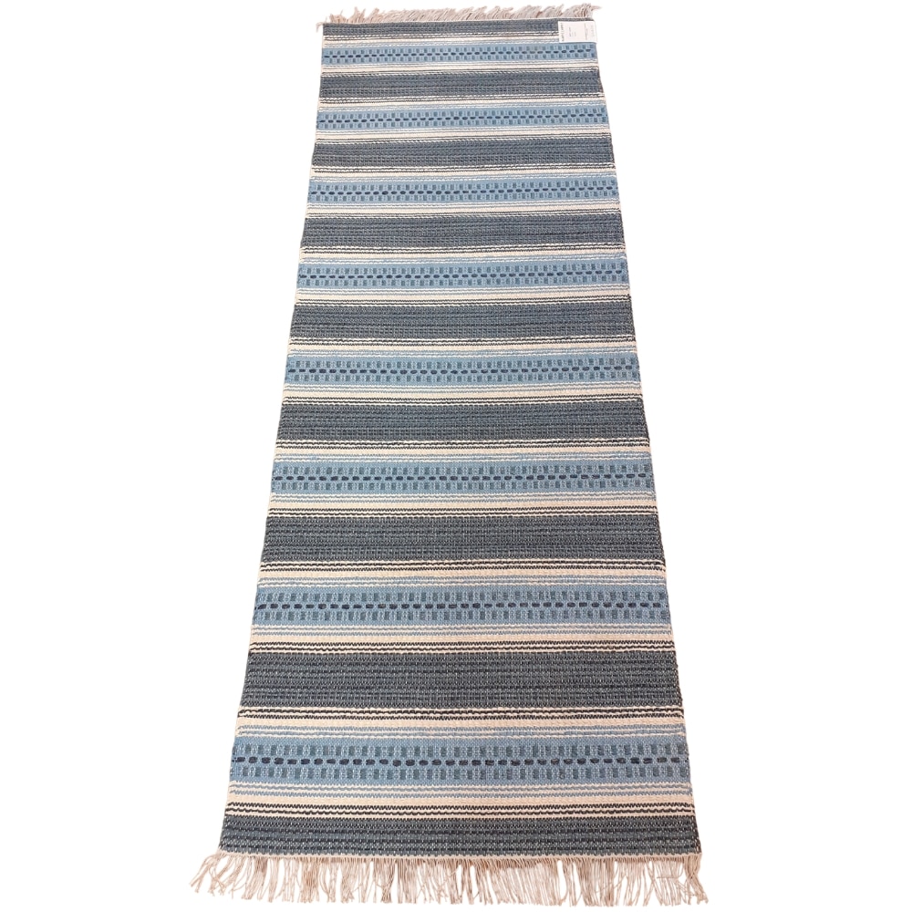 Muovimatto 70 x 300 cm sininen Nuotti – Kangaspuilla kudottu muovimatto on kätevä, helppohoitoinen ja monikäyttöinen. Muovimatto on varsinainen retromatto vuosikymmenten takaa ja taas muodissa!