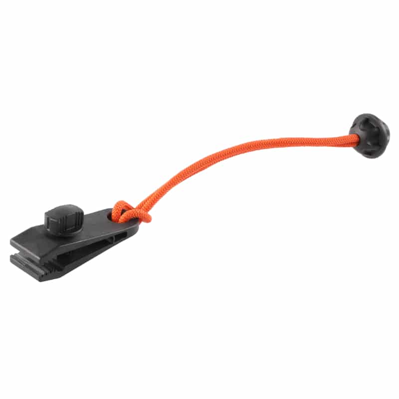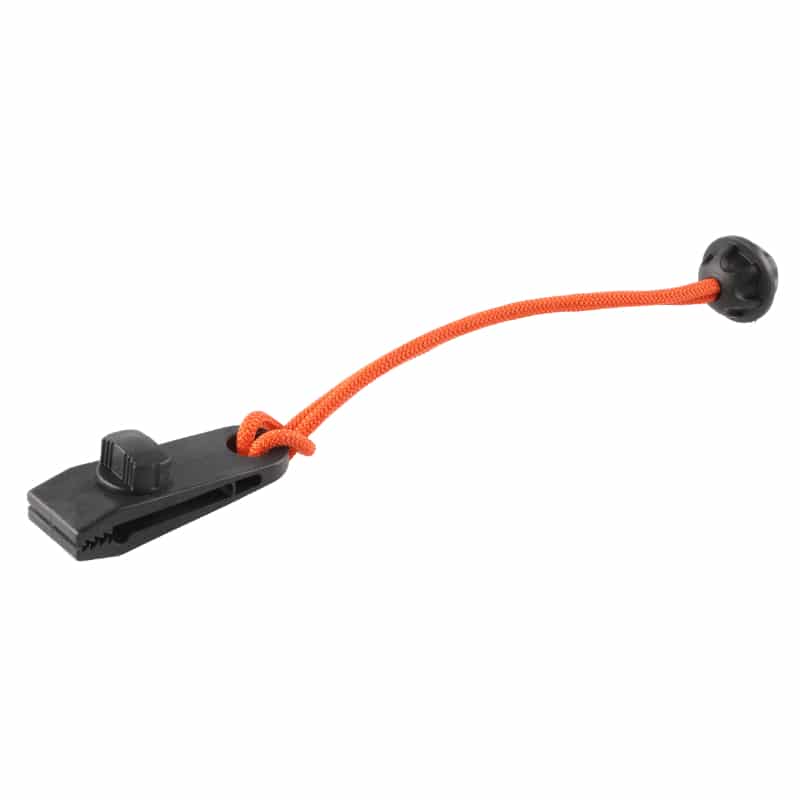 Kiinnityslenkki pressuille, telttailuun tai muille kankaille. Lenkissä on kätevä puristinkiinnitys, joka mahdollistaa käytön myös kankaissa ja pressuissa, joissa ei ole purjerenkaita reunoissa.