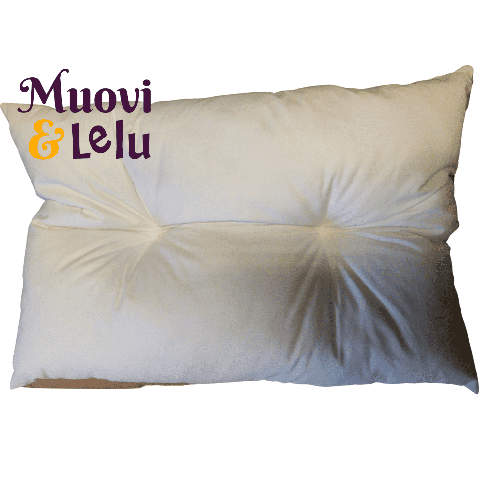 Tyyny lasten valkoinen 40 x 55 cm on tikattu läpi, joten tyyny pysyy muodossaan vaikka se pestään pesukoneessa. . Tyyny on kahdella heftauksella 200 g.