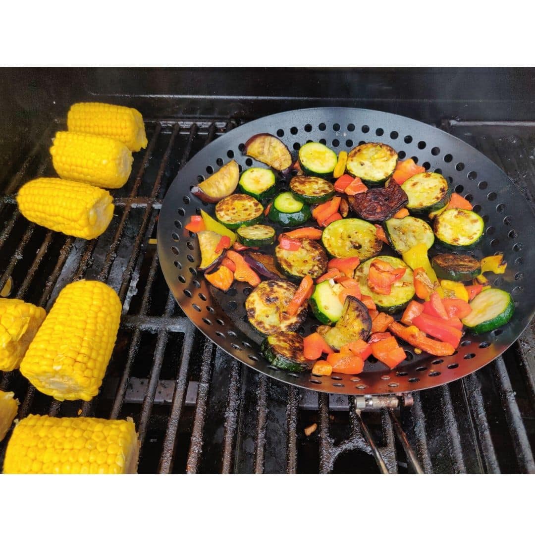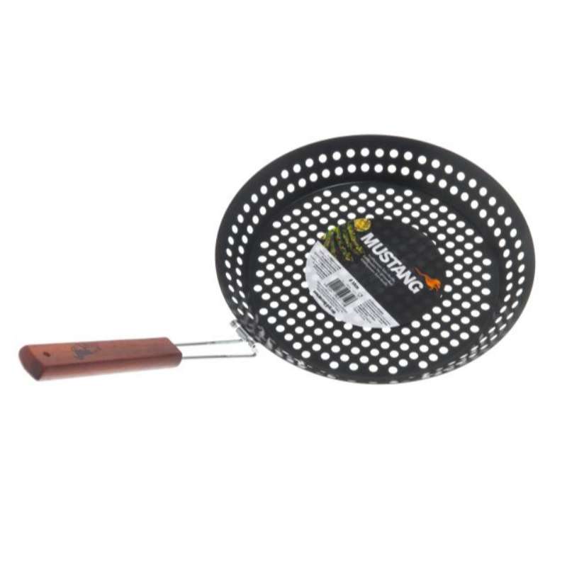 Tällä grillipannullla lämmität helposti makkaranpalat ja vihannekset ja saat nuotion maun ruokaan. Pannussa on reikiä, joiden kautta grillistä nouseva kuuma ilma kypsentää pannun sisällön. Samalla ylimääräinen neste valuu pannulta pois. Pannu sopii mainiosti kasvisten ja kalan grillaamiseen. Grillipannun kääntyvän kahvan ansiosta pannu on helppo ottaa mukaan.