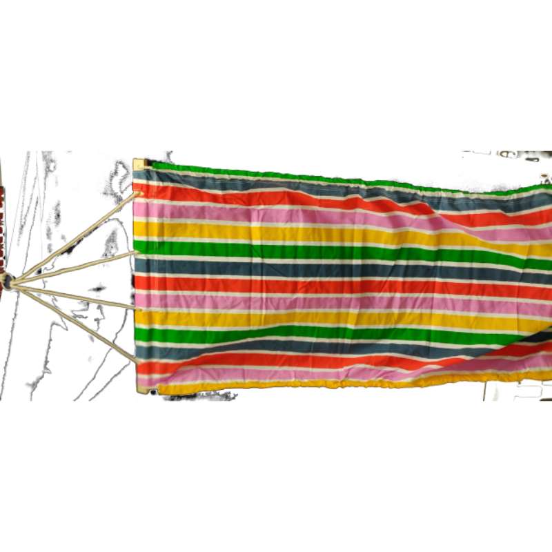 Yhden hengen riippumatto on oivallinen retkeilyyn tai vaikkapa kesämökin pihaan. Riippumaton päissä on puurima, joten matto pysyy leveänä vaikka siinä makaakin. Päissä on narut ja rengas.