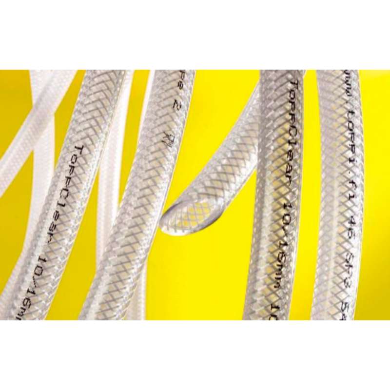 Kudosvahvisteinen ToppClear-vesiletku on kiertymätöntä, läpikuultavaa ja kestää hyvin painetta. Se sopii sekä teollisuuden käyttöön että pesutiloihin, saunaan, autotalliin ja veneeseen.