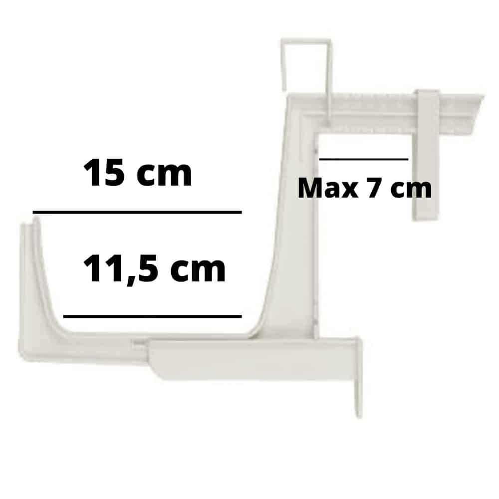 Säädettävä, valkoinen ja muovinen kannatin sopii erikokoisten parvekelaatikoiden kiinnittämiseen. Kannatin soveltuu eri valmistajien parvekelaatikoille ja eripituisille laatikoille. Pakkaus sisältää kaksi parvekelaatikon kannatinta. Kiinnitys onnistuu erilaisille kaiteille. Kaiteen maksimisyvyys 7 cm.