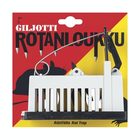 Kotimaiset Giljotti-rotanloukut ovat erittäin helppoja virittää, ja ne eivät lyö sormille. Loukut valmistetaan korkealuokkaisesta pakkasen- ja iskunkestävästä ABS-muovista. Soveltuvat sekä ulko- että sisäkäyttöön.