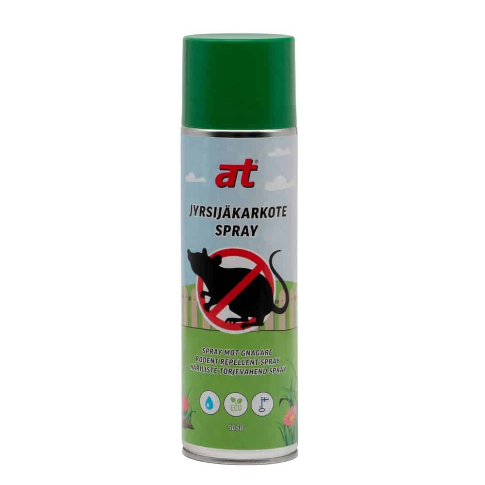 AT Jyrsijäkarkote on luonnonmukainen ja biologisesti hajoava torjuntasuihke rottien, hiirien ja muiden jyrsijöiden torjuntaan. AT Jyrsijäkarkotetta voidaan käyttää ulko- ja sisätiloissa. Vaivaton ja yksinkertainen vaihtoehto pyydyksille ja myrkyille.