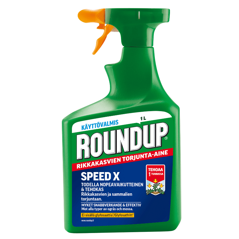 Käyttövalmis rikkakasvien torjunta-aine tehoaa kaikkeen vihreään kasvillisuuteen, kuten leveälehtisiin ja heinämäisiin rikkakasveihin sekä sammaleen, leviin ja kortteisiin. Älä käytä nurmikolla, ellet halua siitä eroon. Paras teho saavutetaan, kun rikkakasvit ovat kasvun alkuvaiheessa. Ruiskuta suoraan rikkakasviin niin, että koko kasvi kastuu. Vain tehoaineelle altistuneet kasvinosat kuolevat.