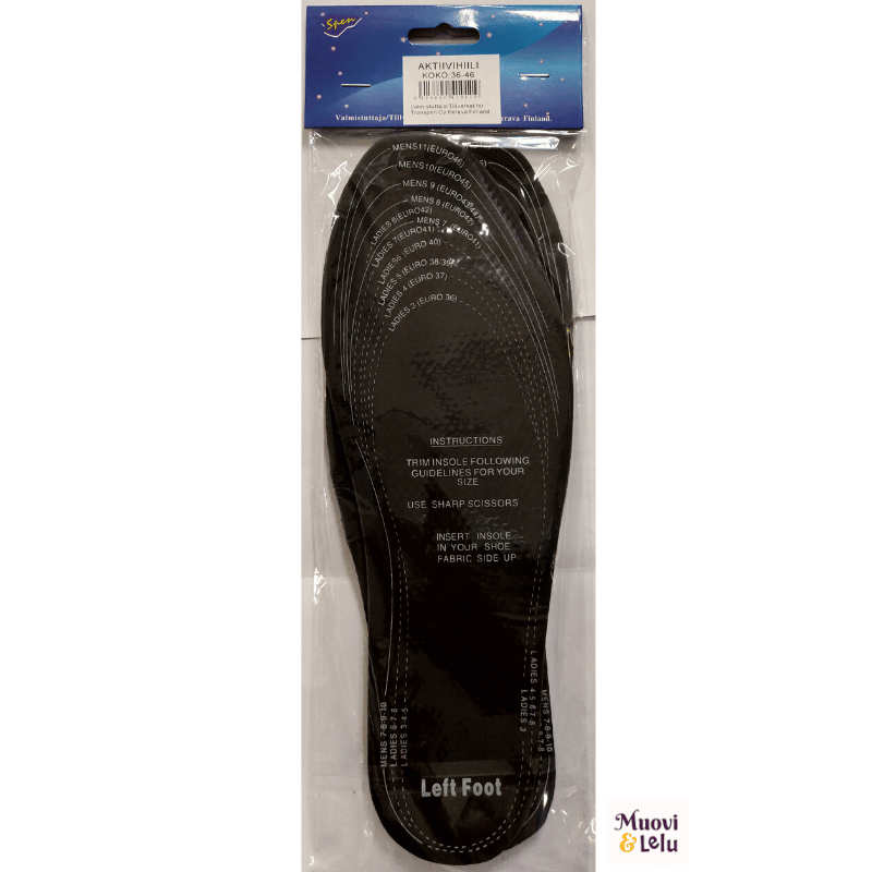 Pohjallinen sopii kokoihin 36-46, sillä pohjallisen voi leikata saksilla sopivan kokoiseksi.