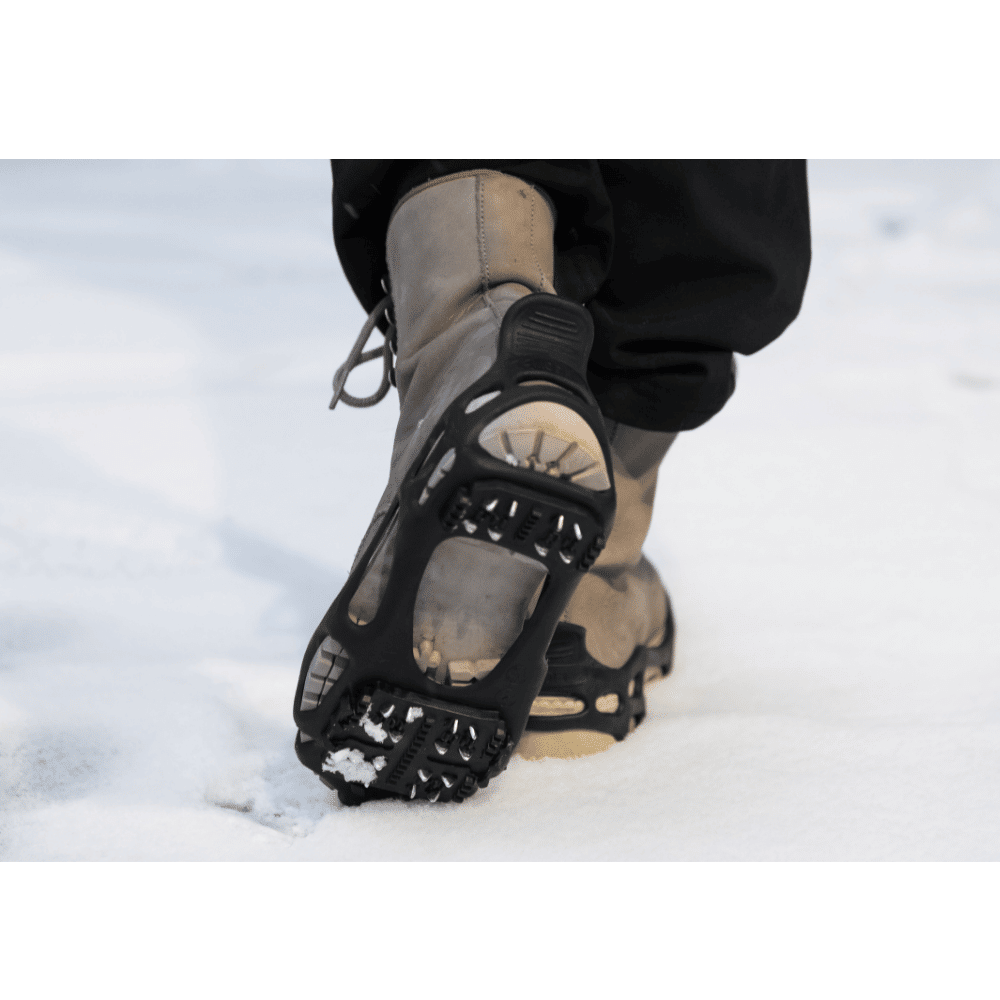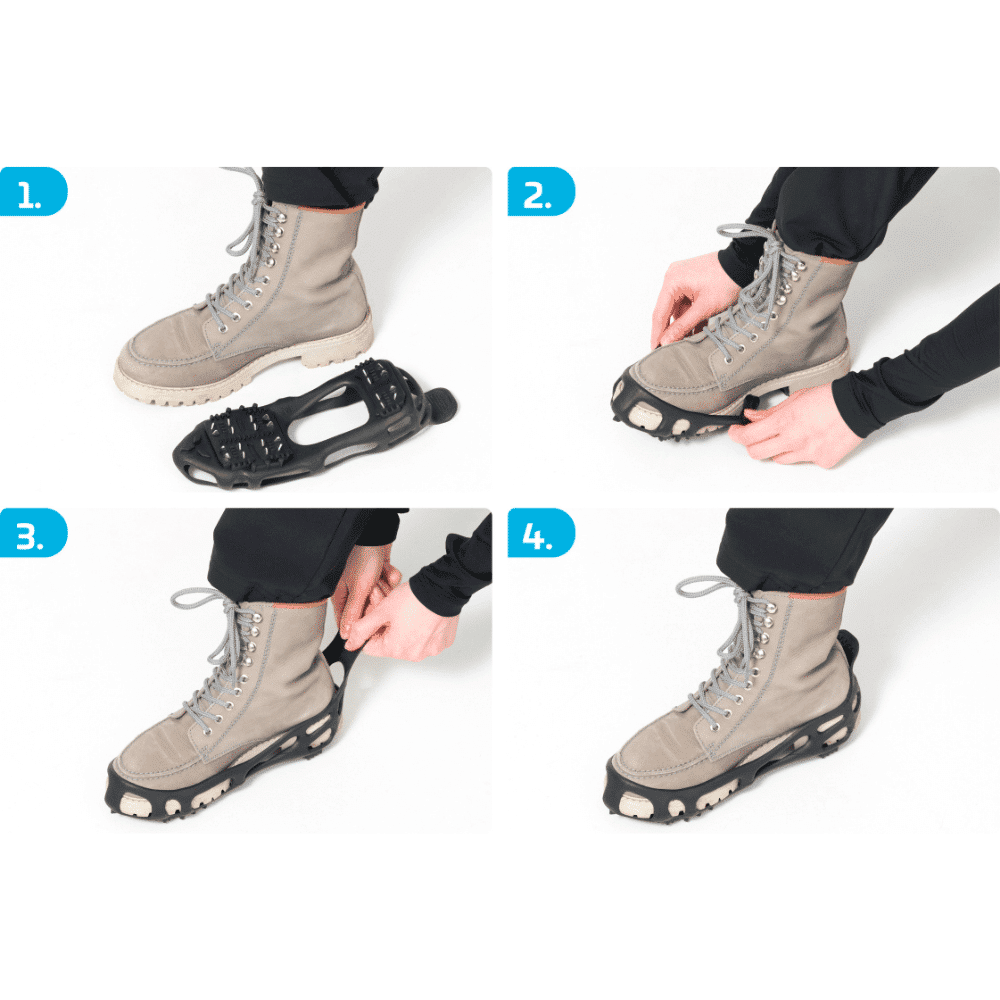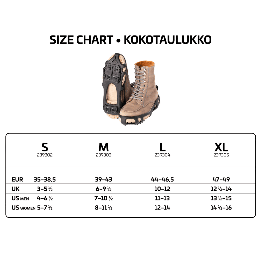Kengän liukueste 39-43 M Atom, jolla saat helppokäyttöiset jääkengät talviulkoiluun. Kengänliukuesteet antavat hyvän pidon liukkaalla jäällä ja pakkautuneella lumella.