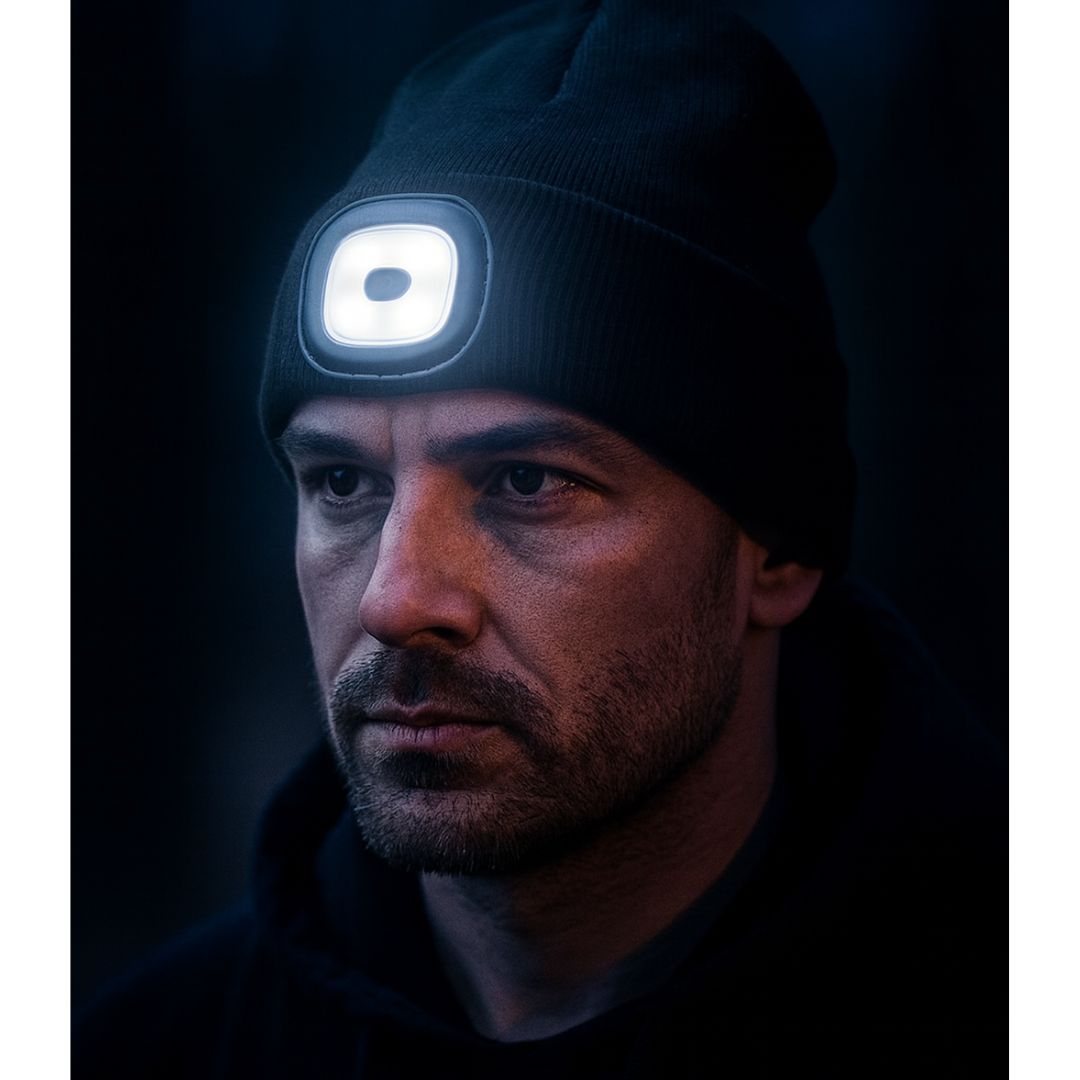 Tämä musta led-valolla varustettu pipo on täydellinen itsellesi tai lahjaksi! Ei enää tarvitse sählätä erillisen otsalampun kanssa, kun on pipo ja lamppu samassa paketissa.