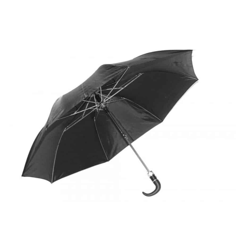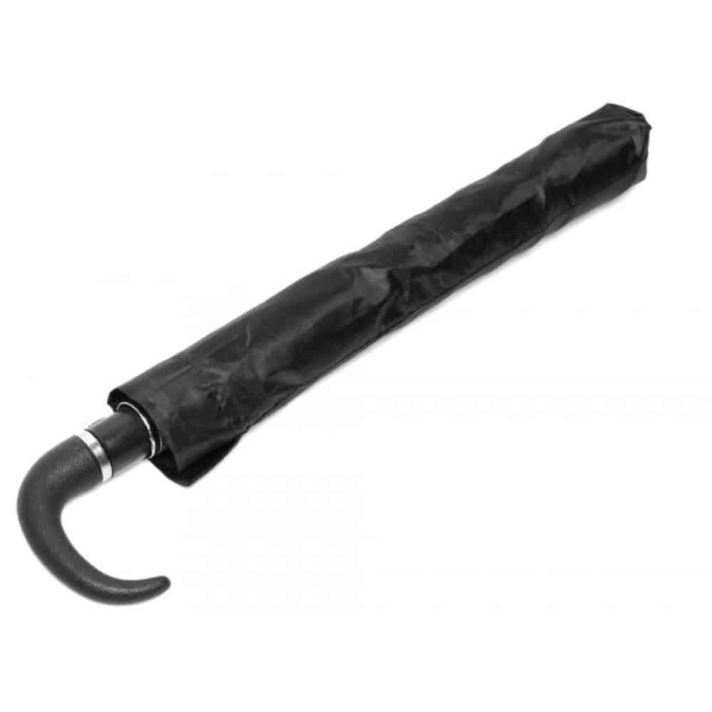 Klassinen musta sateenvarjo, jossa on automaattinen avausmekanismi. Halkaisija 93 cm. Pituus suljettuna n.40 cm.