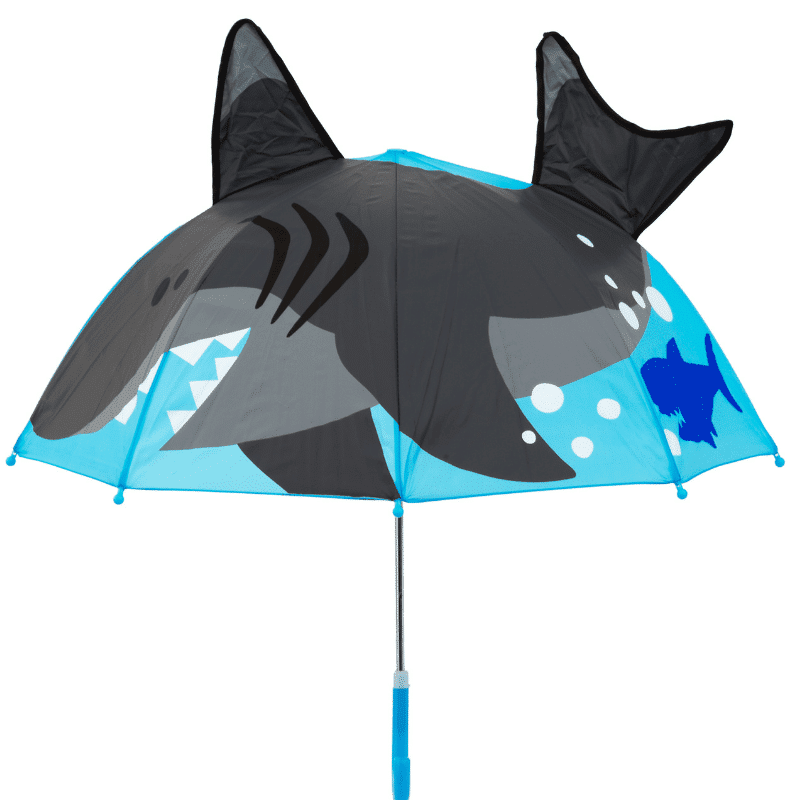 Hauska eläinaiheinen sateenvarjo lapselle. Hurjan hain selkäevällä ja pyrstöllä viimeistelty sadesuoja on miellyttävä valinta sadesään ulkoiluun. Ihastuttava eläinsateenvarjo saa mielen pikkuisen paremmaksi myös kaikkein harmaimpana sadepäivänä.