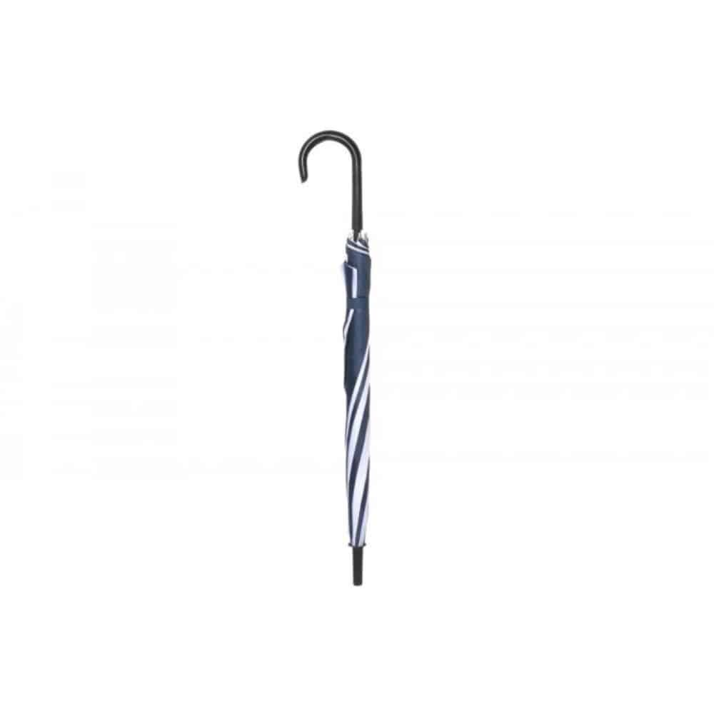 Sateenvarjo on klassinen pitkävartinen sateensuoja automaattisella avausmekanismilla. Muovinen kahva. Sinivalkoinen 100% polyesterinen kangas. Leveys 95cm.