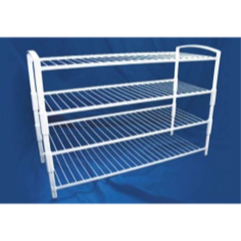 Muovi päädyt, muuten metallia. Suomalainen kenkäteline.