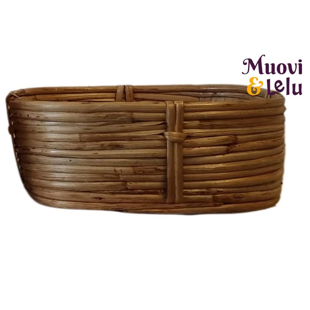 Korin kauniisti punottu rakenne ja luonnollinen väri luovat rauhallista ja lämpöistä tunnelmaa mihin tahansa tilaan. Pyöreät reunat lisäävät korin pehmeää ja miellyttävää muotoilua, tehden siitä esteettisen ja mukavan käyttää.