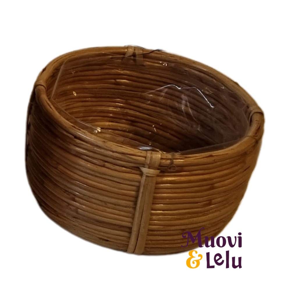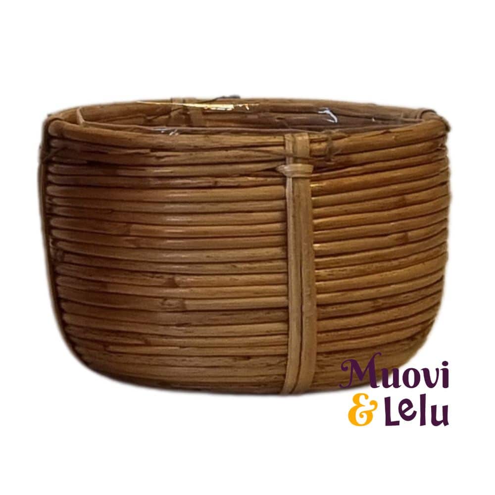 Korin sisäpuolella on muovivuoraus, joka tekee siitä erinomaisen valinnan esimerkiksi kasvien suojaruukuksi tai säilytyskoriksi. Muovivuori estää kosteuden vuotamisen, mikä tekee siitä käytännöllisen vaihtoehdon niin sisätiloihin kuin uloskin.