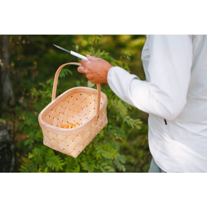 Marjakori iso 29 cm – Kaunis perinteinen kevyt pärekori sienimetsään tai marjanpoimintaan. Marjakoriin voi kerätä marjoja, sieniä ja hedelmiä. Kahvan voi kääntää alas.