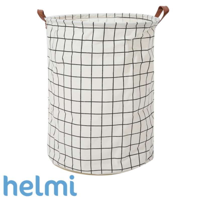 Ruudullinen pyöreä kangaskori kahvoilla leluille tai muille tavaroille.