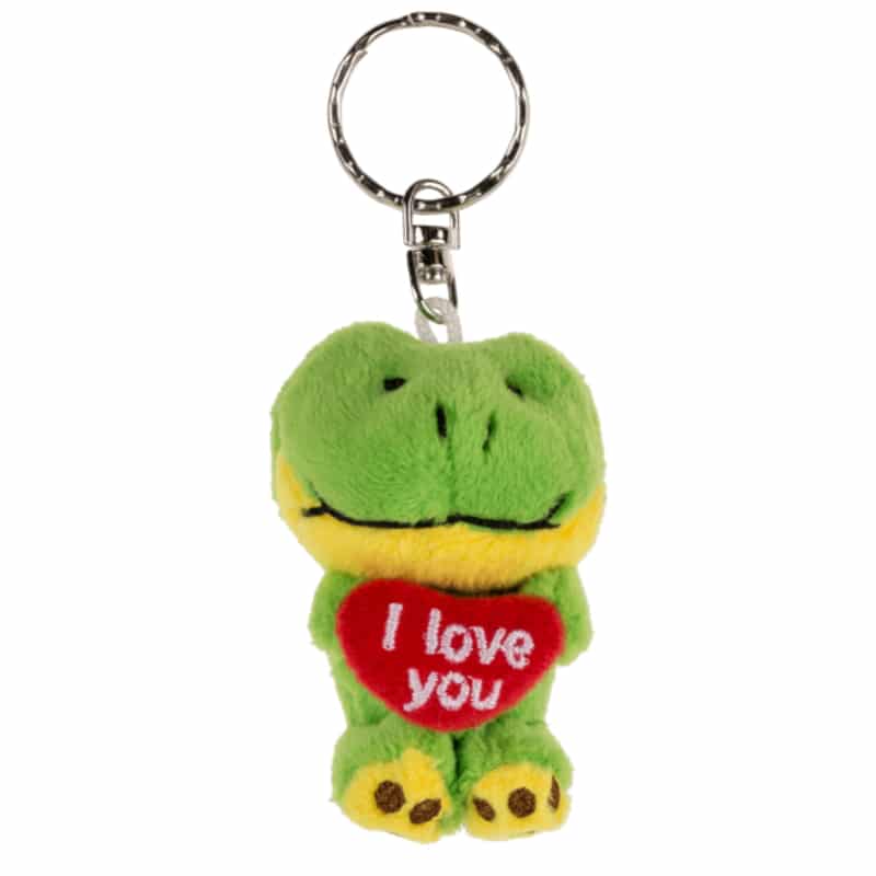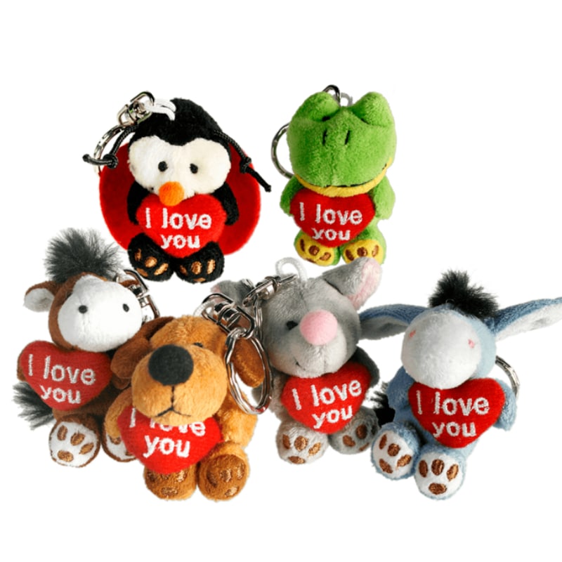 Super suloisia pieniä eläin aiheisia pehmolelu avaimenperiä, joilla on sylissä romanttinen punainen sydän, jossa lukee: ”I love you”. Voit kiinnittää avaimenperät laukkuusi tai avainnippuusi ja antaa sen lahjaksi rakkaallesi.