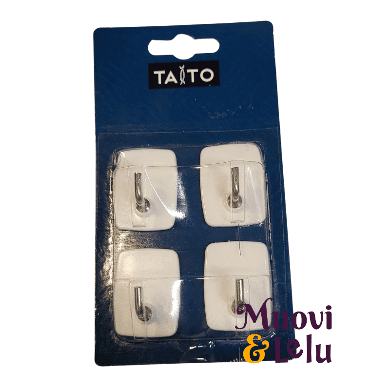 Pakkauksen mukana tulee neljä kappaletta tarrakiinnitteistä avainkoukkua. Anna koukkujen kiinnittyä vuorokausi, ennen kuin laitat siihen mitään roikkumaan.