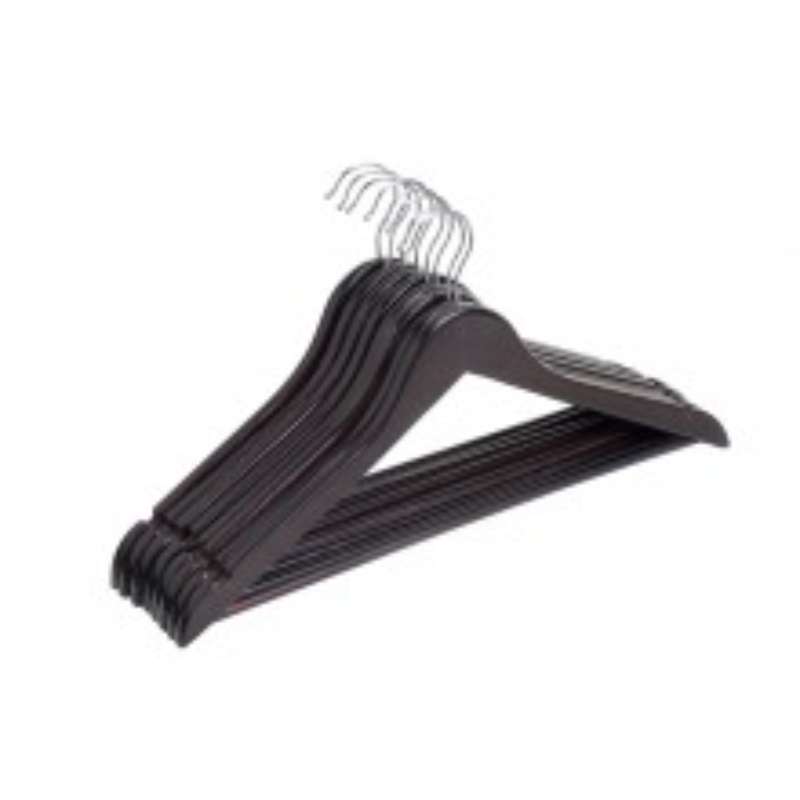 Henkari musta puu 8 kpl. Puiset vaateripustimet pyöreällä välipuulla ja hamelovilla.