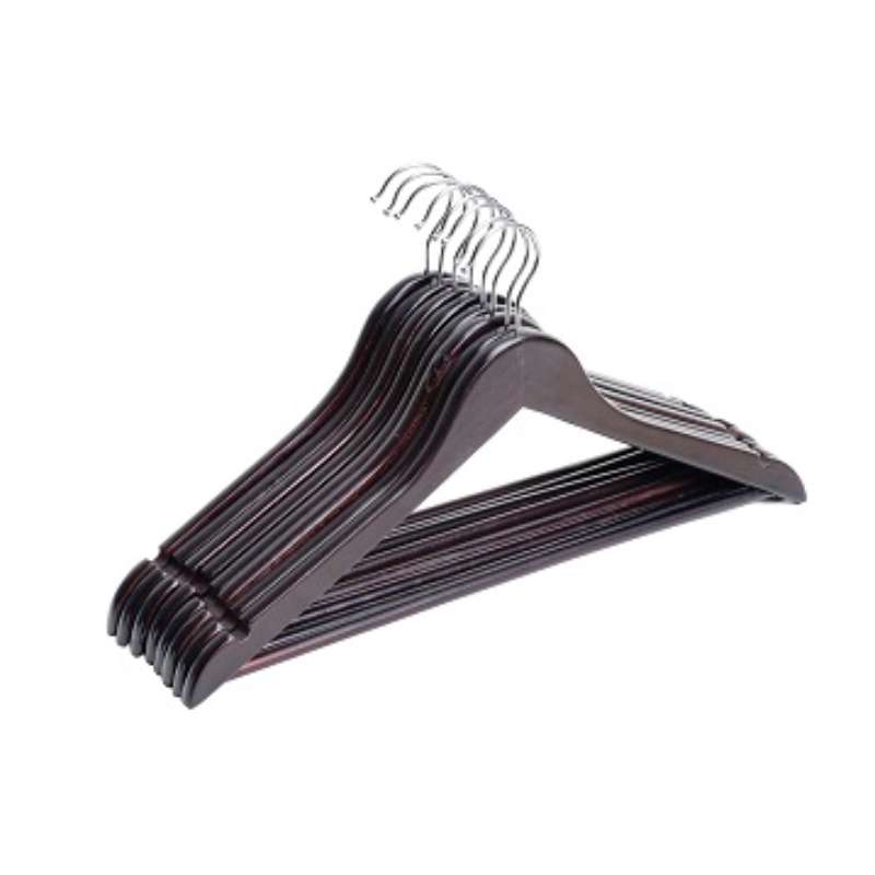 Puiset vaateripustimet pyöreällä välipuulla ja hamelovilla.