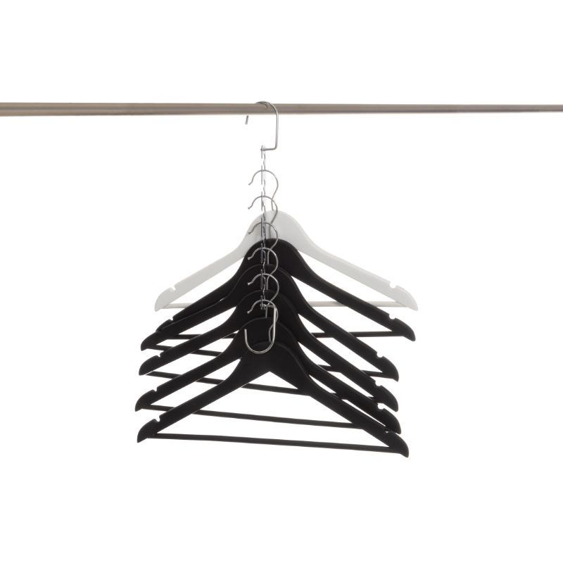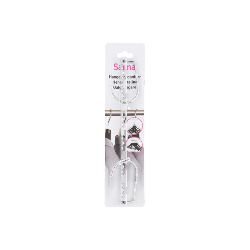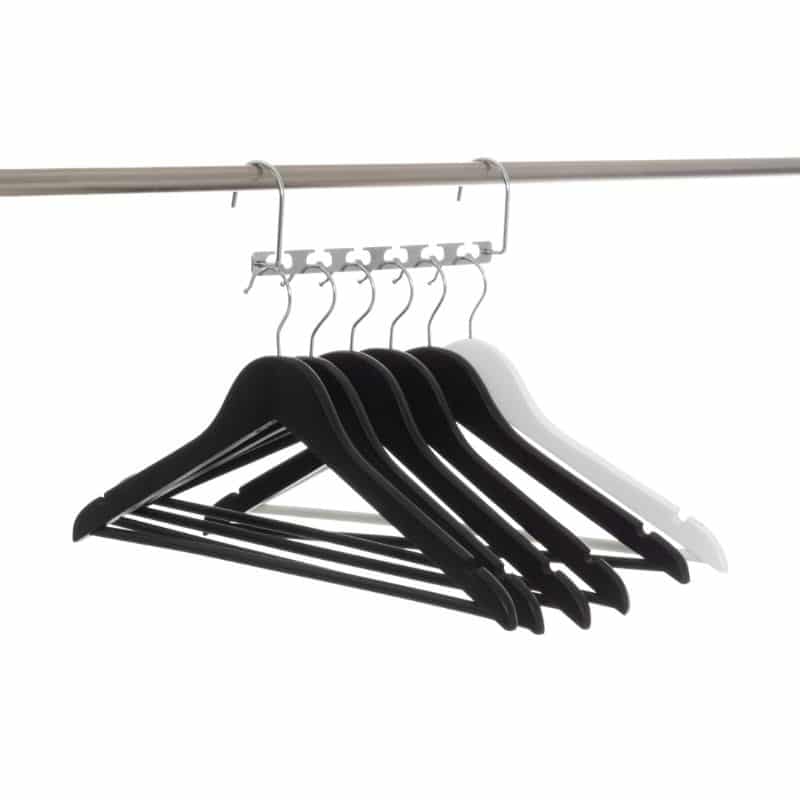 Säästä tilaa vaatekomerossa tällä henkaritelineellä! Telineeseen voi laittaa kuusi henkaria, kun se on pystysuorassa, ja 12 henkaria, kun se on vaakasuorassa asennossa.