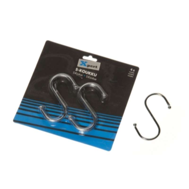 S-koukku 4 kpl metallia kromattu