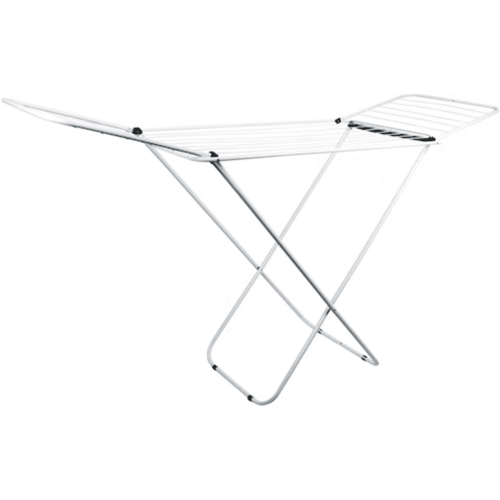 Kuivausteline 20 m Aino siipimalli harmaa, jonka avulla kuivuu iso määrä pyykkejä. Lisäsiivet taittuvat ja sopivat täydellisesti kevyiden pyykkien kuivaamiseen. Kuivaustelineellä voi myös kuivattaa suuria tekstiileitä, vaikka esimerkiksi lakanoita. Aino pyykkiteline on kevyt, joten sitä on helppo siirtää. Kun pyykkitelinettä ei tarvita, se mahtuu kaappiin kun se on taitettu. Kun sää sallii, niin kuivausteline voi myös helposti liikuttaa ulos tai parvekkeelle. Teline toimii myös tarvittaessa vaatteiden ja tekstiilien tuuletustelineenä.