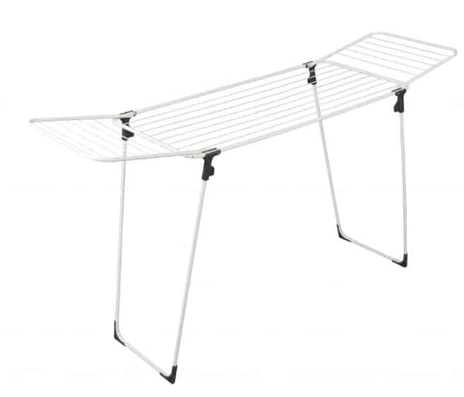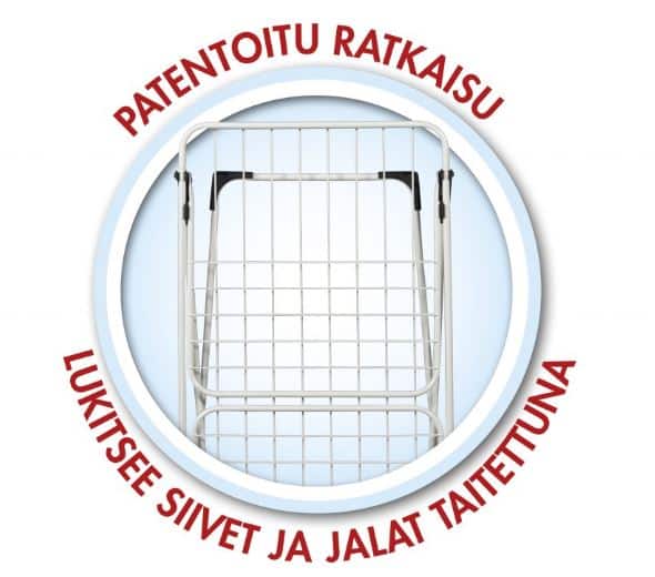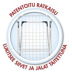 Ainutlaatuinen kuivausteline! SINI Neo -kuivaustelineessä on patentoitu ratkaisu, joka lukitsee molemmat jalat ja siivet, kun teline on taitettuna. Kuivaustelineen jalustan tukeva rakenne minimoi kallistelua. Taitettavien siipien ansiosta kuivaustilaa voidaan säätää tarpeen mukaan. Neo kuivausteline taittuu kasaan, joten se on helppo säilyttää kapeassakin tilassa. Ripustustilaa 18 metriä!