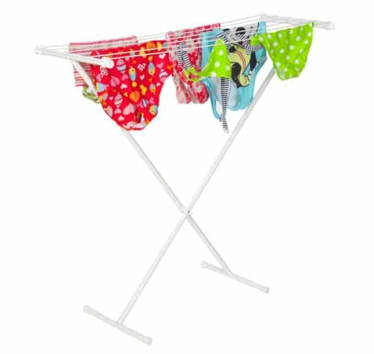 Kuivausteline soveltuu pieneen talouteen tai kakkostelineeksi esimerkiksi urheiluvaatteiden ja uimapukujen kuivattamiseen.