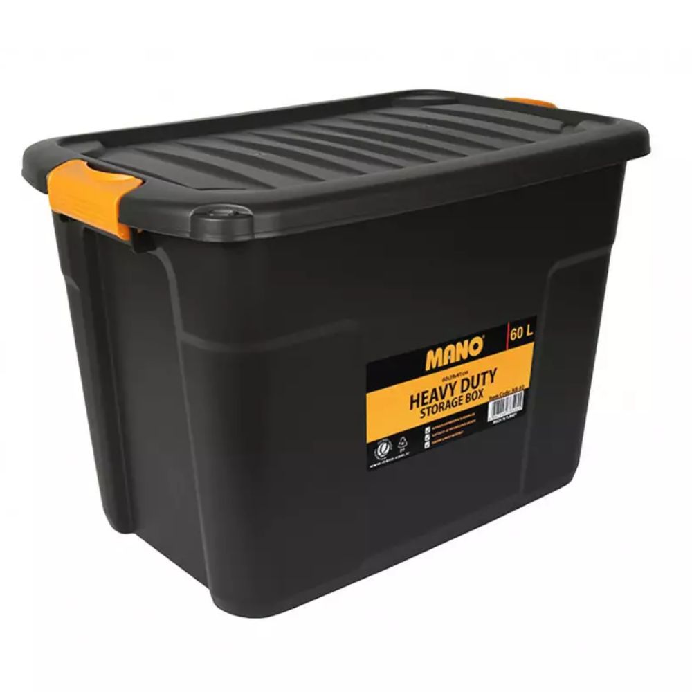 Pidä tavarat järjestyksessä ja suojassa tällä Manon kestävällä varastolaatikolla, jonka tilavuus on 60 litraa.