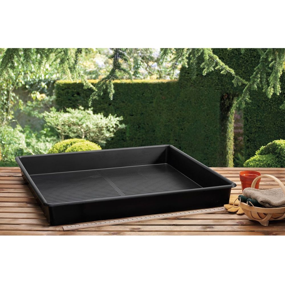 Tämä valtava tarjotin on valikoimamme suurin, sen syvyys on 12 cm ja massiivinen sisätilavuus 144 litraa. Tarjottimessa on sarja matalia vaakasuuntaisia harjanteita tarjottimen sisäpohjassa, jotka helpottavat kuivaamista ruukuista.