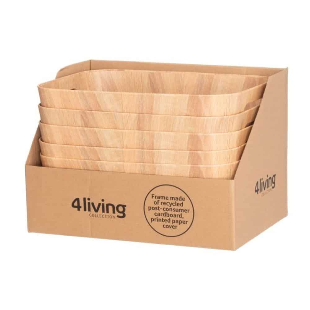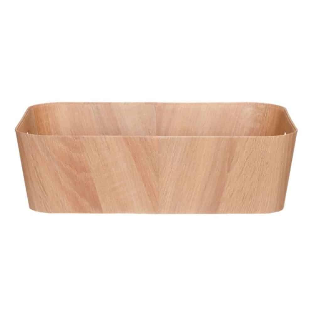 Monikäyttöinen säilytyslaatikko auttaa pitämään ympäristösi järjestyksessä tyylikkäästi, olipa kyseessä sitten koti tai toimisto. Pinta on puukuvioitua paperia ja runko on valmistettu kuluttajilta kerätystä kierrätyskartongista.