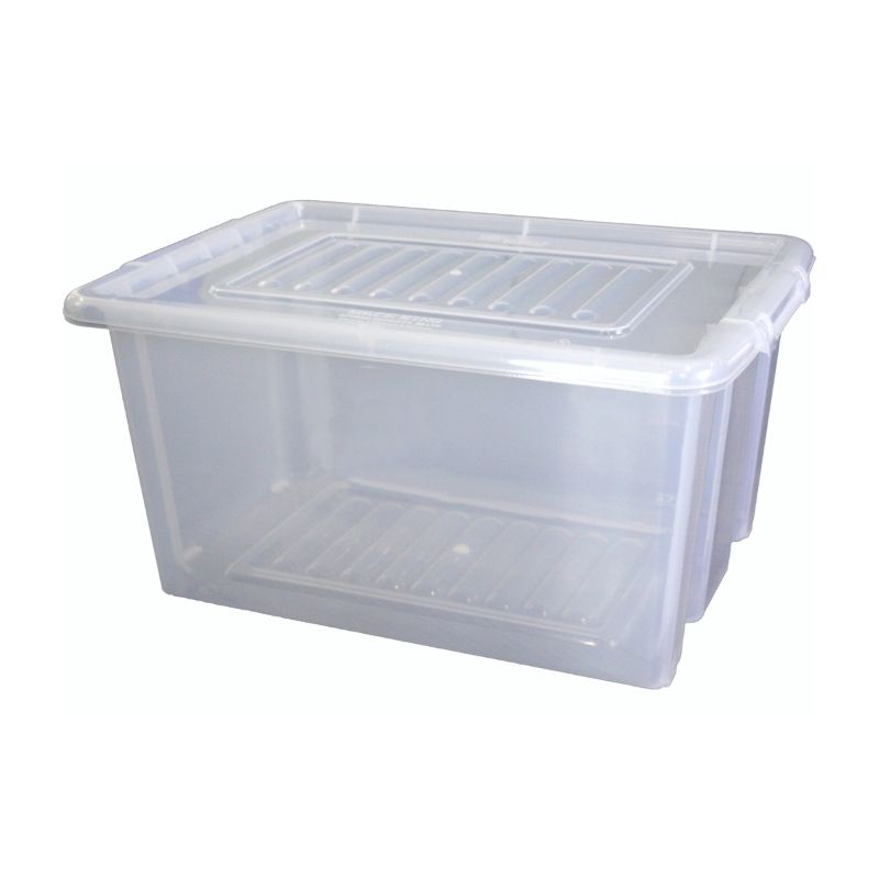 Tukeva, läpikuultava Cetap-säilytyslaatikko, jossa on lukittava kansi.