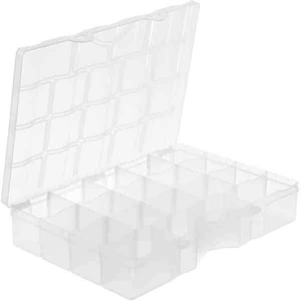 Pienissä, irrotettavissa lokeroissa pysyvät järjestyksessä esimerkiksi ruuvit, mutterit, ompelutarvikkeet, hiuspinnit tai kalastusvälineet.