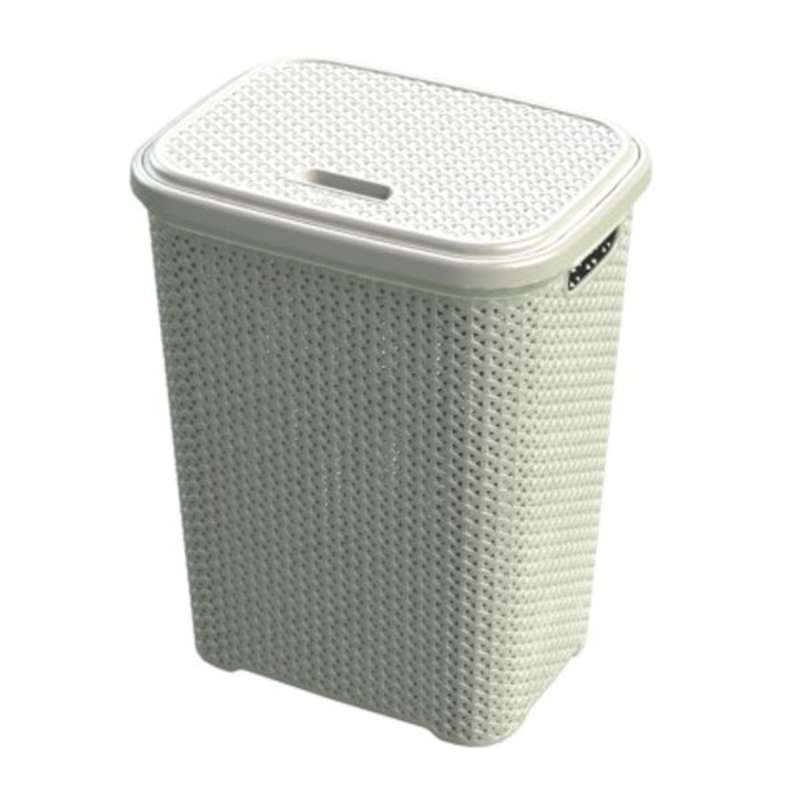 Luonnonvalkoinen muovirottinki pyykkikori, joka sopii kaikkiin koteihin.