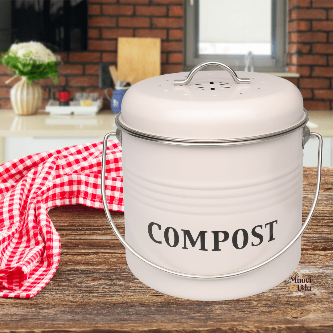 Kaunis, kannellinen astia ruoantähteiden säilyttämiseen ennen kompostiin laittoa. Kantokahva helpottaa astian tyhjentämistä ja kuljettamista. Kompostiin menevien roskien säilöminen on mukavaa ja hajutonta tällä tyylikkäällä ja kauniilla helppokäyttöisellä bioroskiksella, jossa on tiivis kansi ja ilmansuodatin.