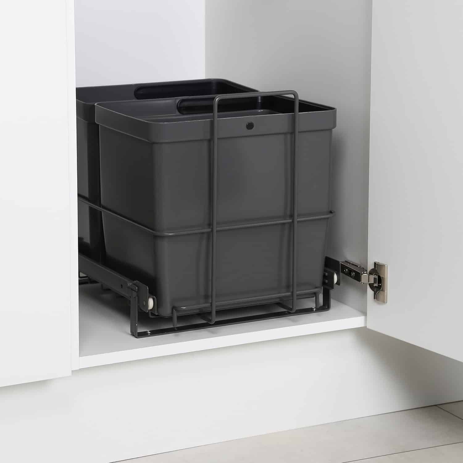 Korkealaatuinen ja kevyesti liukuva jätevaunu pieneen tilaan, lyhyt malli. Tyylikkäästi muotoiltu ja kätevä jätevaunu kahdella sangolla on suunniteltu tekemään lajittelusta helpompaa.