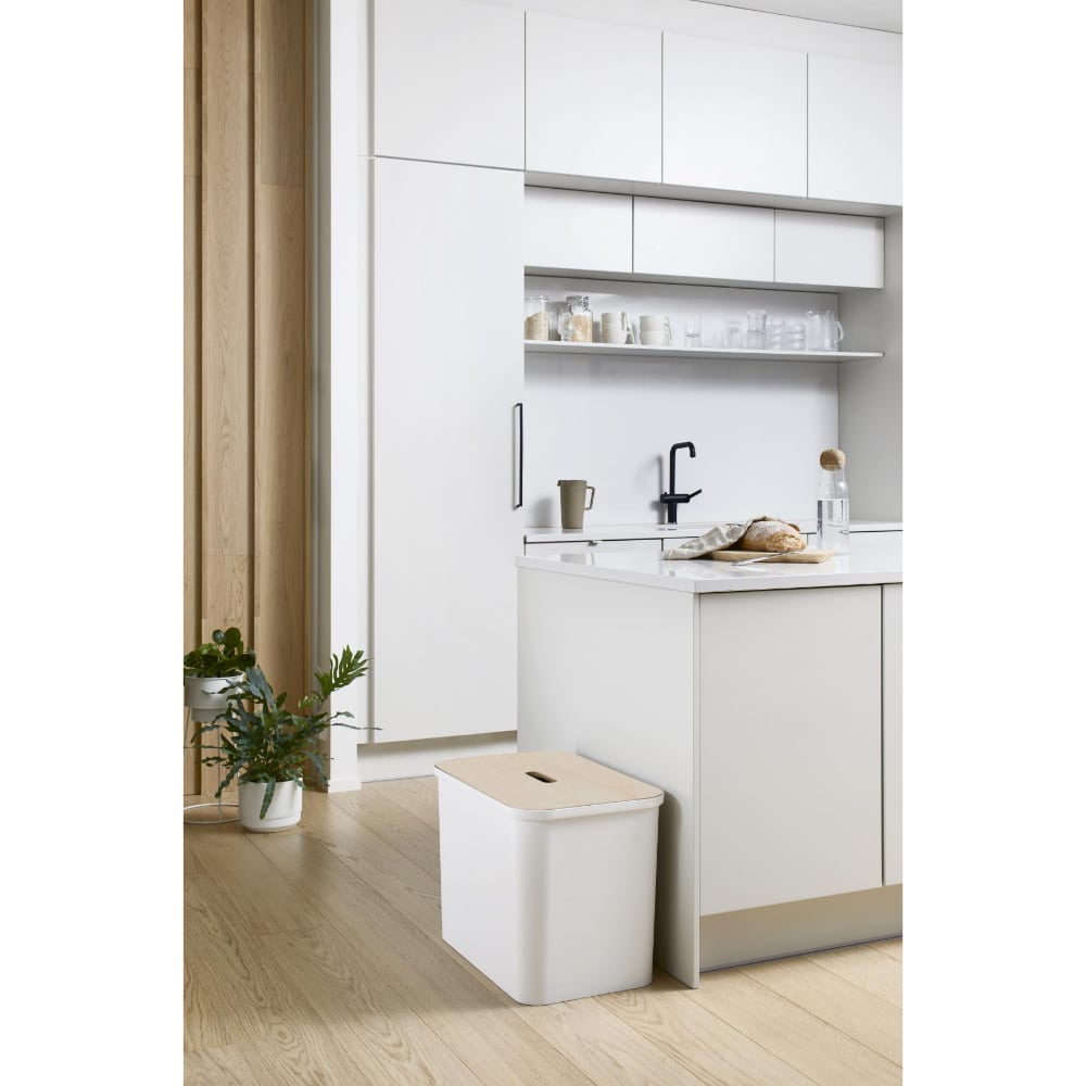76 litran vetoinen, valkoinen SmartStore Collect -kierrätysastia vanerikannen kera on kestävä säilytysratkaisu arjen tarpeisiin. Suomalaista muotoilua edustava säilytysastia on suunniteltu helpottamaan lajittelua ja kierrätystä nykyajan kodeissa. Säilytä kodin pakkausjäte isossa 76:n litran laatikossa ja sijoita se esimerkiksi keittiöön tai eteiseen. Useamman lokeron saat kun täytät ison laatikon pienemmillä sangoilla. Kierrätysastia SmartStore Collect 76 L valkoinen vanerikannella valmistetaan Suomessa, lujasta ja pitkäikäisestä kierrätysmuovista. Tukevan koivuvanerikannen ansiosta laatikko toimii myös jakkarana. Kierrätysastia on saanut lukuisia palkintoja vuoden 2020 aikana: Red dot -muotoilupalkinto, German Design Award -muotoilupalkinto ja Iconic Interior -palkinto.