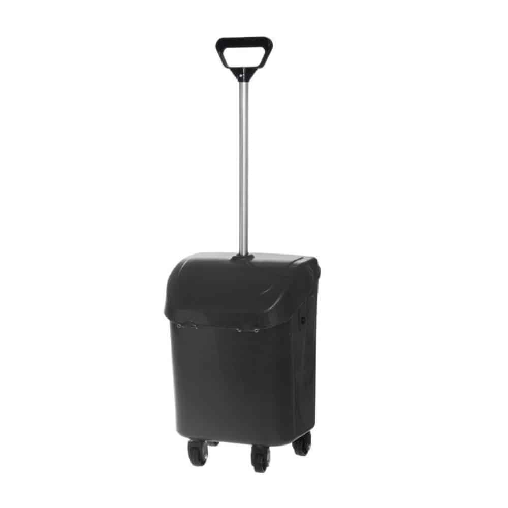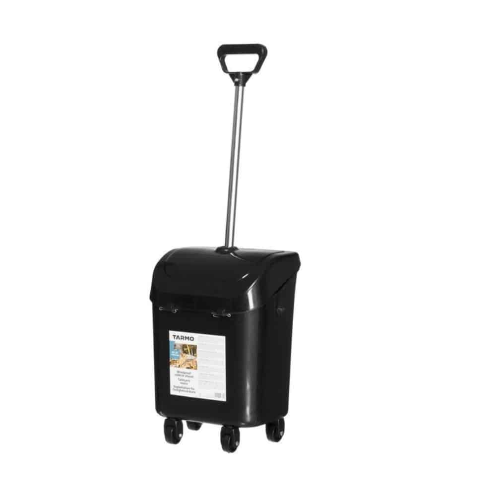 Roskankerääjä talkkarin roskis – Kätevä talkkarin roskis, johon on helppo lakaista roskia ja lehtiä esimerkiksi patiolta, pihakivetykseltä tai terassilta. Soveltuu myös nurmikolle haravoinnin avuksi. Roskiksen kansi aukeaa automaattisesti kun roskiksen kääntää pystyasennosta maata vasten. 4 pyörää ja vetokahva.